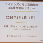 - 【活動報告】「336複合地区セミナー」に参加いたしました2026年3月1日(日)、岡山コンベンションセンターにて開催された「… 続きを読む: 【活動報告】「336複合地区セミナー」に参加いたしました