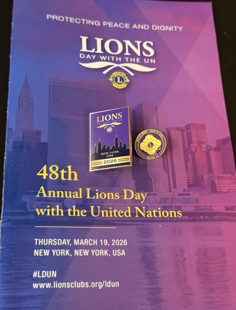 また、参加記念品として、国際会長ピンバッジと、本年の「Lions Day with the United Nations(LDUN)」を記念した特別ピンバッジが配布されました。いずれも本イベントならではの貴重な記念品であり、参加の証として非常に印象深いものとなりました。毎年この時期に開催されており、4月にはオーストリアでも行われます。今回のイベントは直前に日程変更があったこともあり、参加にあたってはある程度余裕を持ったスケジュールを組んでおくことの重要性も感じました。